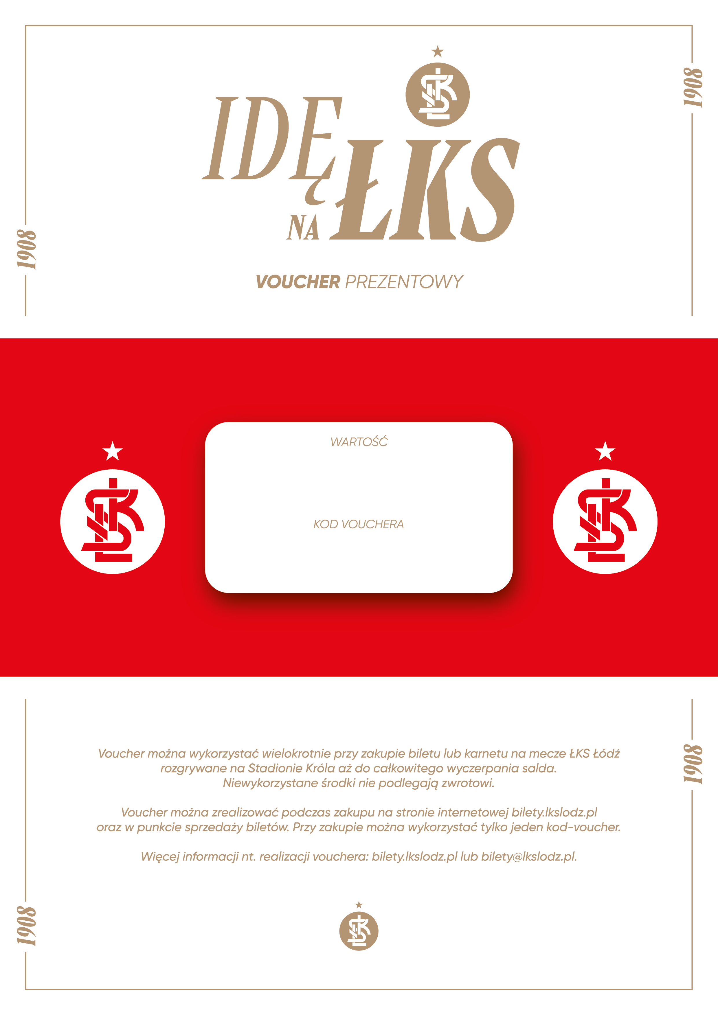 Voucher prezentowy to unikalny kod rabatowy, który można zakupić w punkcie sprzedaży biletów na Stadionie Króla lub samodzielnie na stronie bilety.lkslodz.pl. Jest to korzystne rozwiązanie zarówno dla kibiców spoza Łodzi, jak i tych, którzy preferują formę zakupów online. Elektroniczna forma vouchera umożliwia samodzielny wydruk na domowej drukarce.